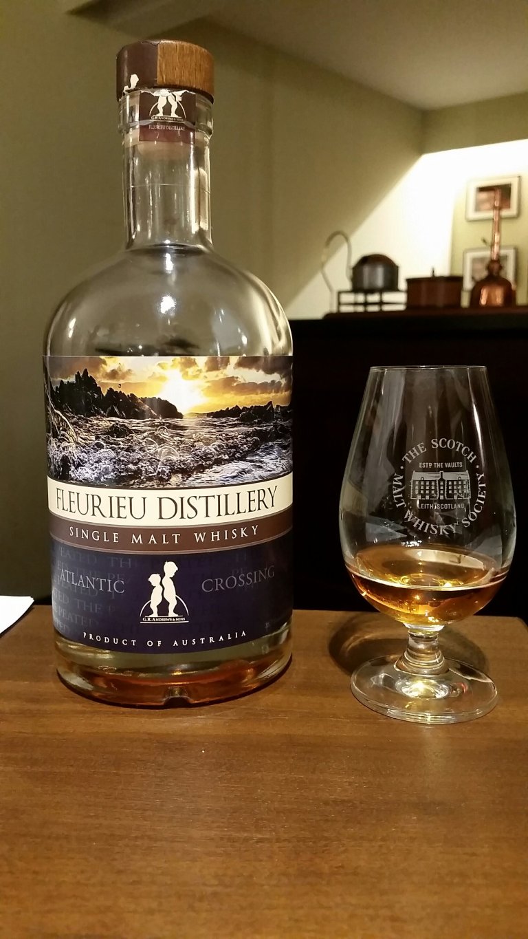 For awhile on the twitter, I would post every Wednesday with a World Whisky Wednesday. Now while that was the initial idea when starting Somewhiskybloke, work, life, and various other things meant that I had to put it on hold for a time. However, tonight we are seeing the return to that old format, with the first of the World Whisky Wednesdays taking a look at an Australian whisky; the Fleurieu Distillery Atlantic Crossing. Hailing from Goolwa on the Fleurieu Peninsula, South Australia (a touch south of Adelaide), the Atlantic crossing is something the distillery has been building to for awhile (you can read more about the distillery itself here). Matured in 5 100L ex-tawny (Australian Port) casks from Seppeltsfield Winery for a total of 4 summers before being blended, the whisky drops into the glass at an impressive 52%, and I am told that the heat of the area means that in the first year they have an angels share of 8%. Is it impressive? Yes. Is it hard to come by? Yes. Is this a bottle that I am keenly thinking of ordering over to the UK? You betcha. So without further ado, the Fleurieu Distillery Atlantic Crossing.