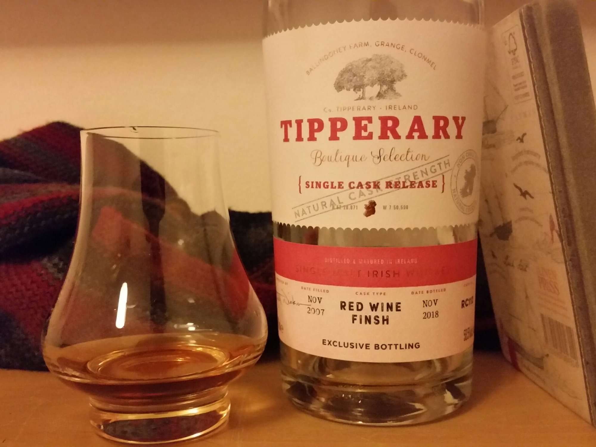 So here we are again having a look at Tipperary. I thoroughly enjoyed their 10 Year Old, but to me this, the Red Wine Finish, was the stand out Whiskey. Why haven’t I written about it yet? Well, I left it at the back of the cupboard. So what makes this Whiskey a stand out? For starters, it’s a cask strength Whiskey, at 58.5%, and that makes it something I enjoy, but that draws out the richness of the flavour all the more. 10 Years in a second fill ex-Oloroso Cask gives it a whole boost of flavour, but it’s the 11 month finish in an ex-Rioja cask that really pushes the flavours forward for this nearly 11 year old Whiskey. I am told these casks come from Spain, directly from a trusted wine merchant and friend (cough cough Bodegas Faustino), and while that may be a marketing line, in this Whiskey it feels as though it really makes the difference. So I brought out my bottle from the back of the cupboard, felt disappointment when I saw how little was left, and poured that tiny touch into a glass to enjoy. Here’s what I found.