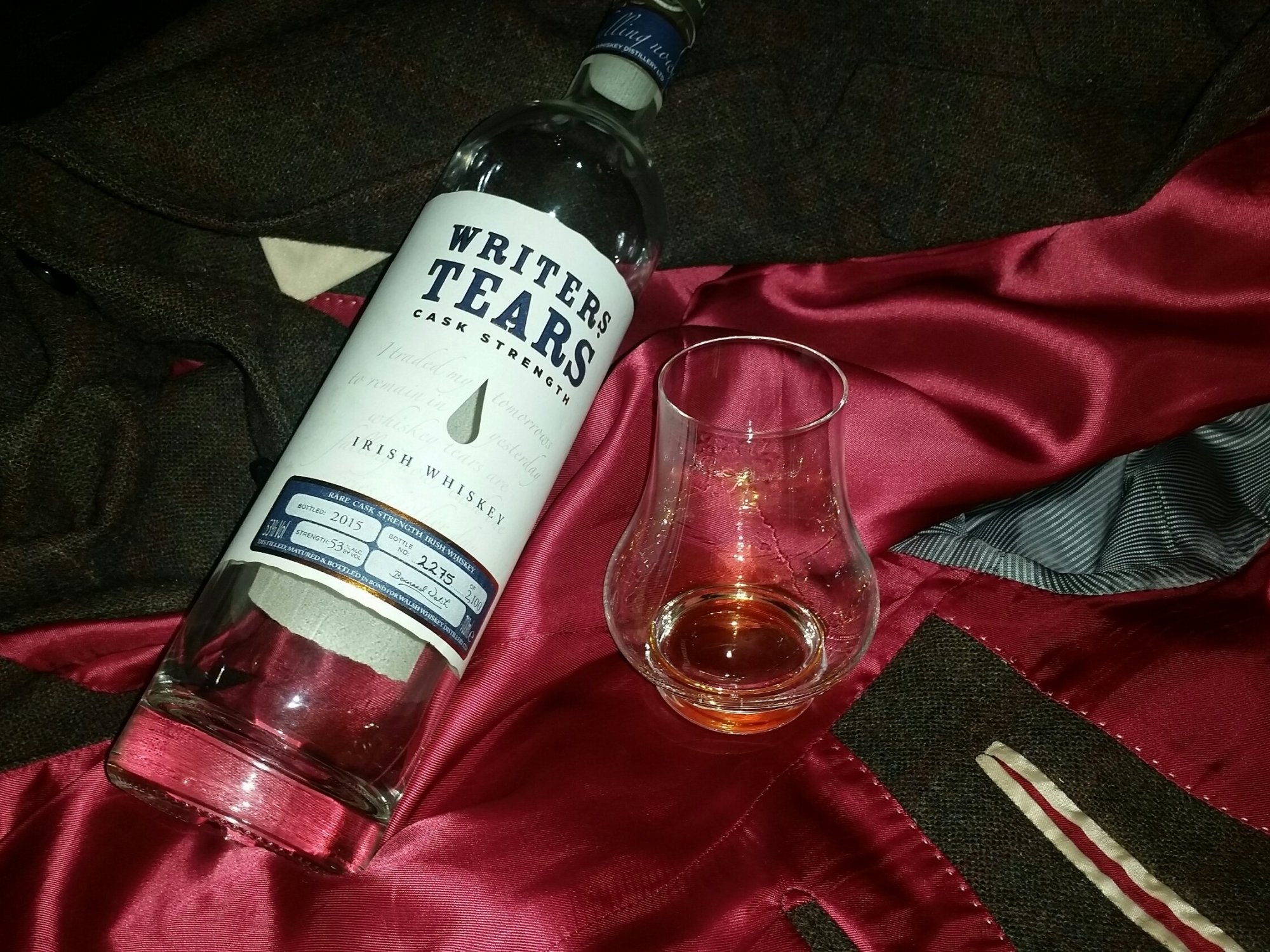 Now there’s something to have on your bottle. That’s the start to Dierks Bentley’s Whiskey Tears, proudly written over the label of each bottle of writers tears. While none of my tears cry anyone’s name, they may well be made of and for whiskey. This is the Writers Tears Cask Strength, from 2015. Now Writers Tears bottles a cask strength edition every year, and while each and every year they are stunning, the 2015 is something else. A blend of triple distilled single malt and single pot still, the whiskey is aged in ex-bourbon American Oak, and each bottle is individually numbered so you know who has your bottle. Curiously, I appear to be sipping from bottle 2275 from a limited run of… 2100. Huh. Still, it’s a beautiful whiskey, and well worth the €130 it costs from most retailers.